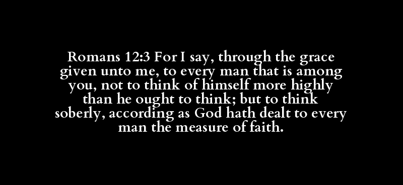 Romans 12:3 For I say, through the grace given unto me, to every man that is among you, not to think of himself more highly than he ought to think; but to think soberly, according as God hath dealt to every man the measure of faith.