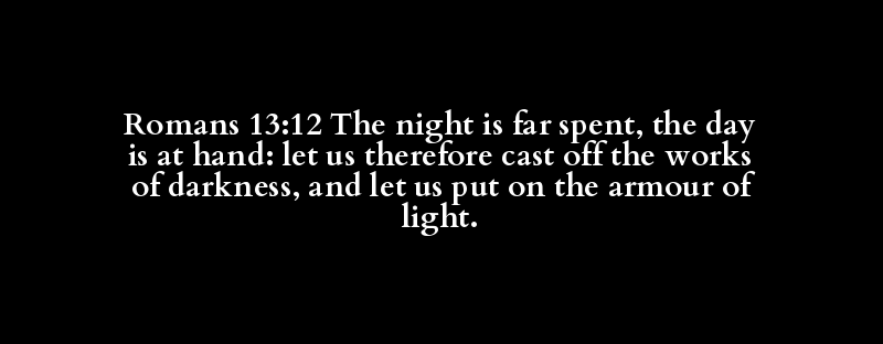 | mid-)night | increase, proceed, profit, be far spen.. | also, and, but, moreover, now | age, + alway, (mid-)day (by day), dail.. | approach, be at hand, come (draw) near.. | cast off, lay apart (aside, down), put.. | and (so, truly), but, now (then), so (.. | cast off, lay apart (aside, down), put.. | deed, doing, labour, work | darkness | and, also, both, but, even, for, if, o.. | array, clothe (with), endue, have (put.. | armour, instrument, weapon | fire, light |