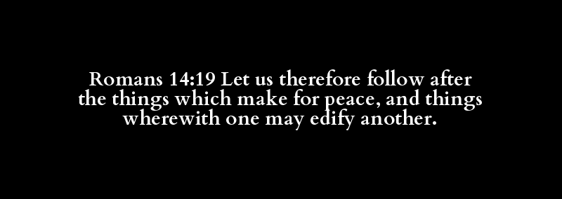 Romans 14:19 Let us therefore follow after the things which make for peace, and things wherewith one may edify another.
