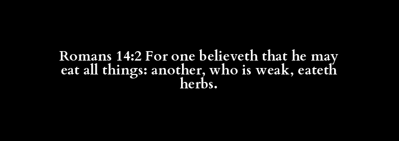 Romans 14:2 For one believeth that he may eat all things: another, who is weak, eateth herbs.