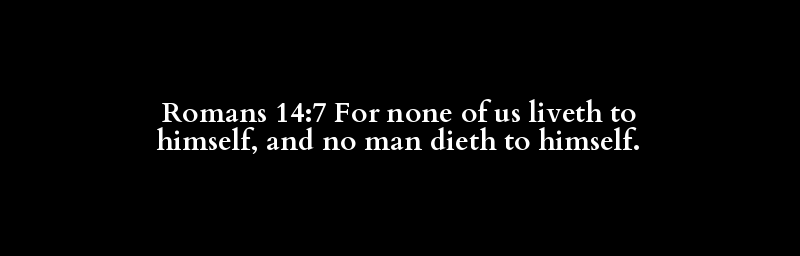 Romans 14:7 For none of us liveth to himself, and no man dieth to himself.