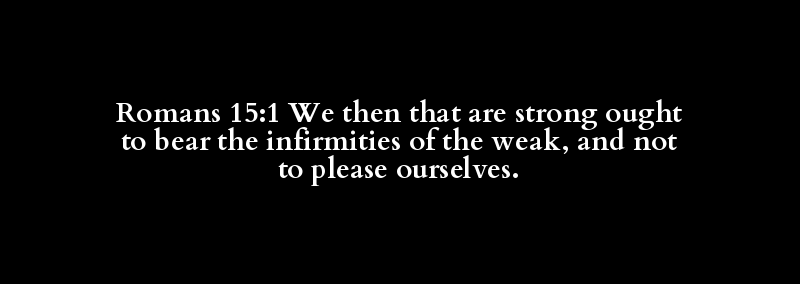 Romans 15:1 We then that are strong ought to bear the infirmities of the weak, and not to please ourselves.