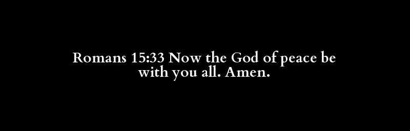 Romans 15:33 Now the God of peace be with you all. Amen.