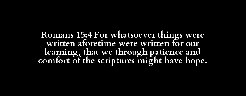 Romans 15:4 For whatsoever things were written aforetime were written for our learning, that we through patience and comfort of the scriptures might have hope.