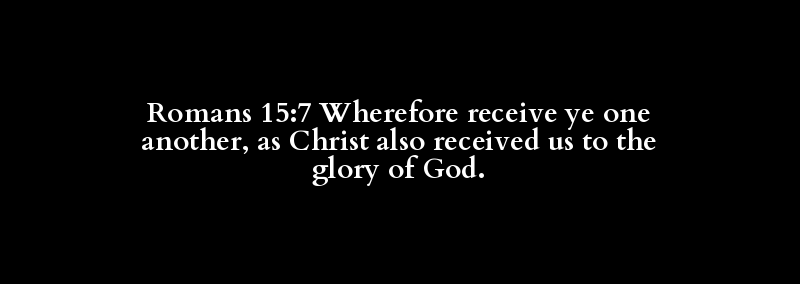 Romans 15:7 Wherefore receive ye one another, as Christ also received us to the glory of God.