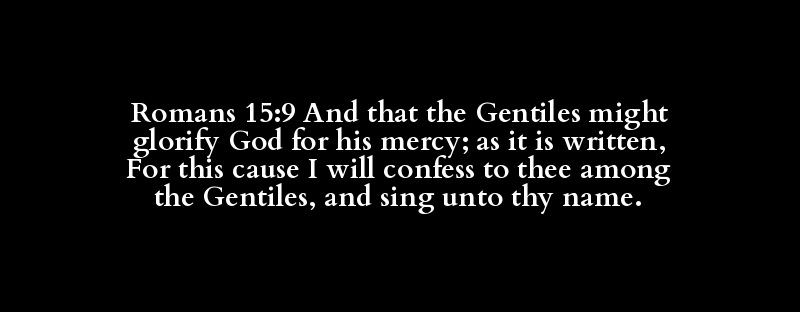 Romans 15:9 And that the Gentiles might glorify God for his mercy; as it is written, For this cause I will confess to thee among the Gentiles, and sing unto thy name.