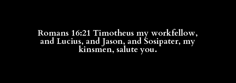 Romans 16:21 Timotheus my workfellow, and Lucius, and Jason, and Sosipater, my kinsmen, salute you.