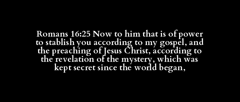 Romans 16:25 Now to him that is of power to stablish you according to my gospel, and the preaching of Jesus Christ, according to the revelation of the mystery, which was kept secret since the world began,