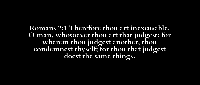 Romans 2:1 Therefore thou art inexcusable, O man, whosoever thou art that judgest: for wherein thou judgest another, thou condemnest thyself; for thou that judgest doest the same things.