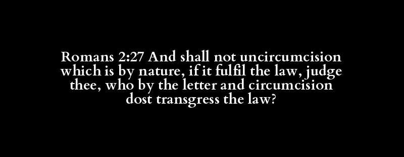 Romans 2:27 And shall not uncircumcision which is by nature, if it fulfil the law, judge thee, who by the letter and circumcision dost transgress the law?