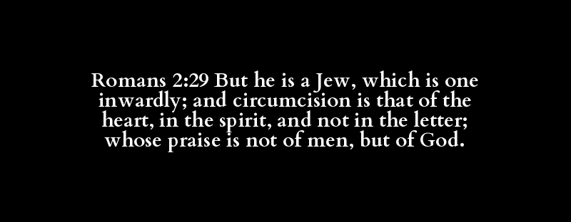 Romans 2:29 But he is a Jew, which is one inwardly; and circumcision is that of the heart, in the spirit, and not in the letter; whose praise is not of men, but of God.