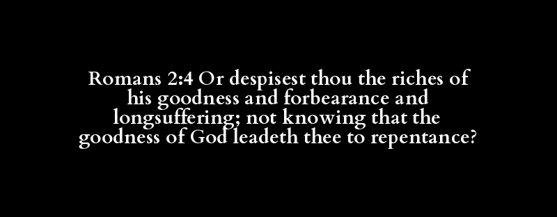 Romans 2:4 Or despisest thou the riches of his goodness and forbearance and longsuffering; not knowing that the goodness of God leadeth thee to repentance?