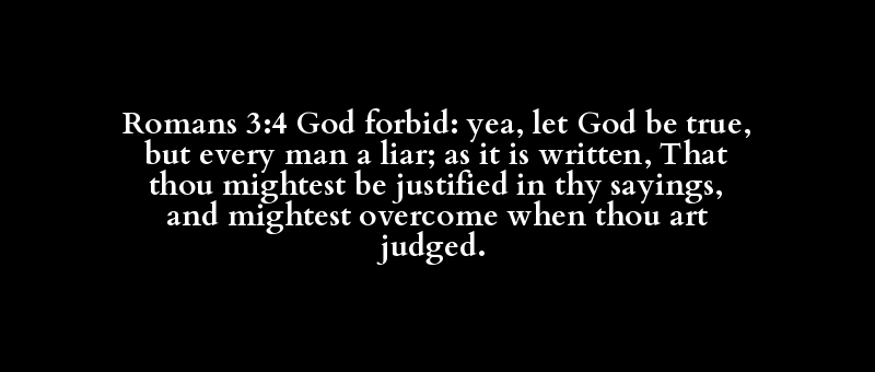 Romans 3:4 God forbid: yea, let God be true, but every man a liar; as it is written, That thou mightest be justified in thy sayings, and mightest overcome when thou art judged.