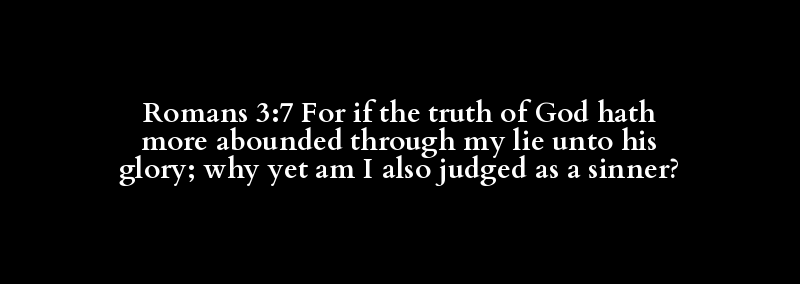 Romans 3:7 For if the truth of God hath more abounded through my lie unto his glory; why yet am I also judged as a sinner?