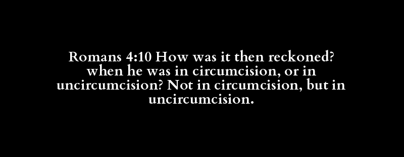 Romans 4:10 How was it then reckoned? when he was in circumcision, or in uncircumcision? Not in circumcision, but in uncircumcision.
