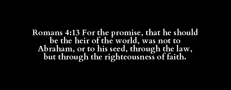 Romans 4:13 For the promise, that he should be the heir of the world, was not to Abraham, or to his seed, through the law, but through the righteousness of faith.