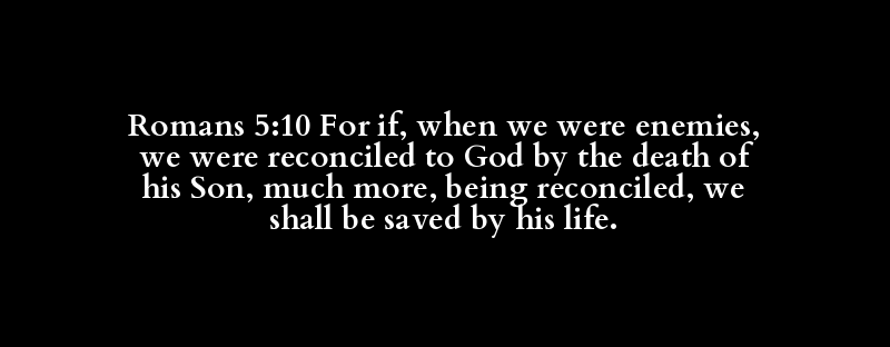 Romans 5:10 For if, when we were enemies, we were reconciled to God by the death of his Son, much more, being reconciled, we shall be saved by his life.