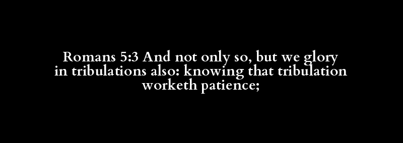 Romans 5:3 And not only so, but we glory in tribulations also: knowing that tribulation worketh patience;