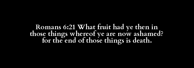 Romans 6:21 What fruit had ye then in those things whereof ye are now ashamed? for the end of those things is death.