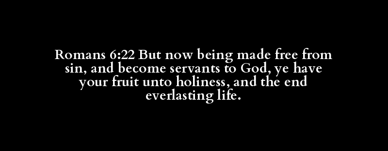 Romans 6:22 But now being made free from sin, and become servants to God, ye have your fruit unto holiness, and the end everlasting life.