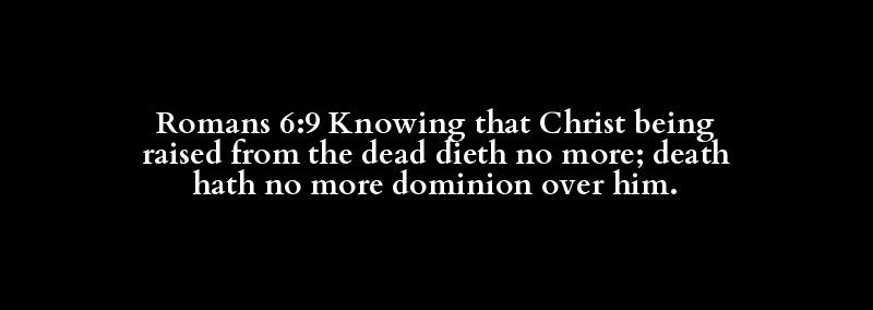 Romans 6:9 Knowing that Christ being raised from the dead dieth no more; death hath no more dominion over him.