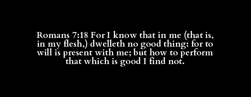 Romans 7:18 For I know that in me (that is, in my flesh,) dwelleth no good thing: for to will is present with me; but how to perform that which is good I find not.
