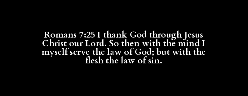 Romans 7:25 I thank God through Jesus Christ our Lord. So then with the mind I myself serve the law of God; but with the flesh the law of sin.
