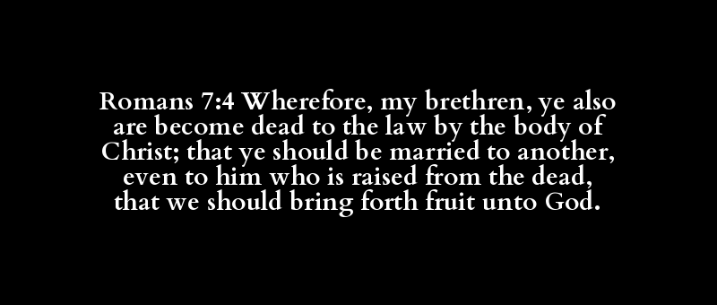 Romans 7:4 Wherefore, my brethren, ye also are become dead to the law by the body of Christ; that ye should be married to another, even to him who is raised from the dead, that we should bring forth fruit unto God.