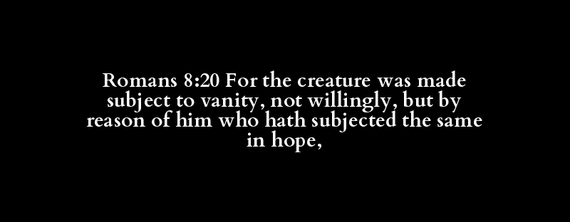 Romans 8:20 For the creature was made subject to vanity, not willingly, but by reason of him who hath subjected the same in hope,