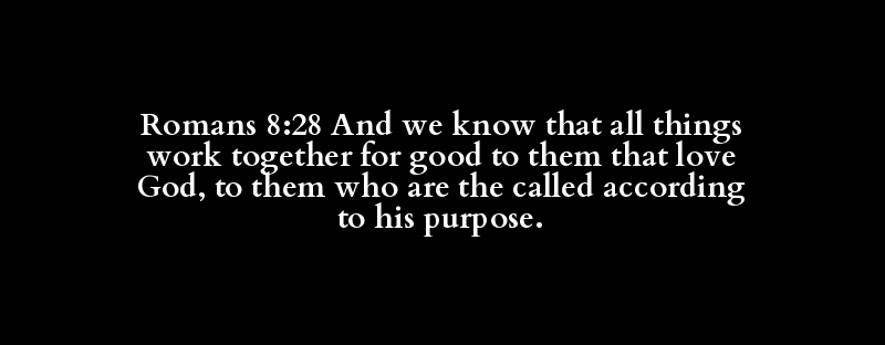 Romans 8:28 And we know that all things work together for good to them that love God, to them who are the called according to his purpose.
