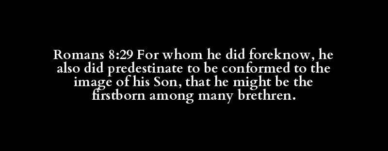 Romans 8:29 For whom he did foreknow, he also did predestinate to be conformed to the image of his Son, that he might be the firstborn among many brethren.