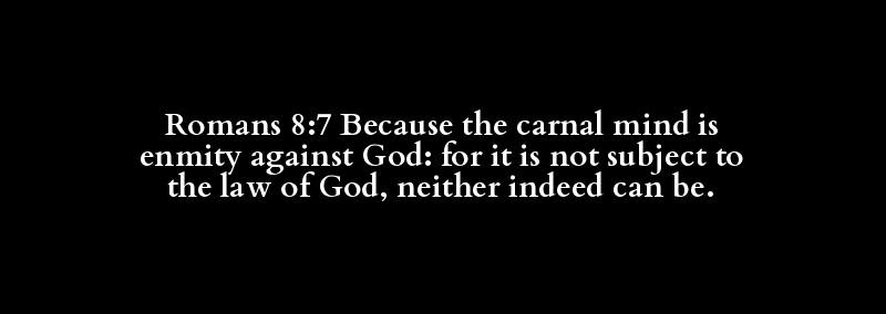 Romans 8:7 Because the carnal mind is enmity against God: for it is not subject to the law of God, neither indeed can be.