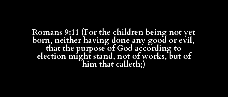 Romans 9:11 (For the children being not yet born, neither having done any good or evil, that the purpose of God according to election might stand, not of works, but of him that calleth;)