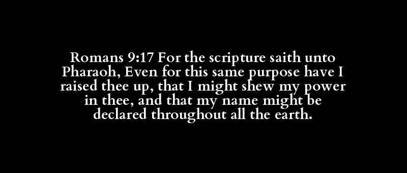 Romans 9:17 For the scripture saith unto Pharaoh, Even for this same purpose have I raised thee up, that I might shew my power in thee, and that my name might be declared throughout all the earth.