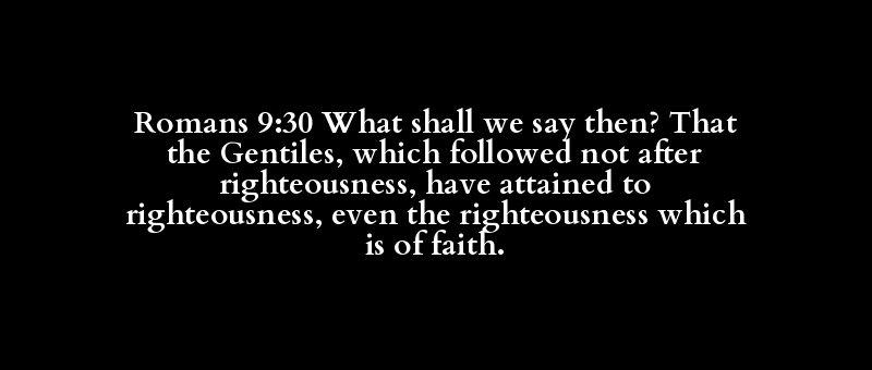 Romans 9:30 What shall we say then? That the Gentiles, which followed not after righteousness, have attained to righteousness, even the righteousness which is of faith.