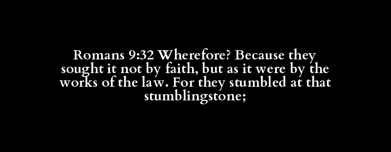 Romans 9:32 Wherefore? Because they sought it not by faith, but as it were by the works of the law. For they stumbled at that stumblingstone;