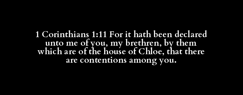 1 Corinthians 1:11 For it hath been declared unto me of you, my brethren, by them which are of the house of Chloe, that there are contentions among you.