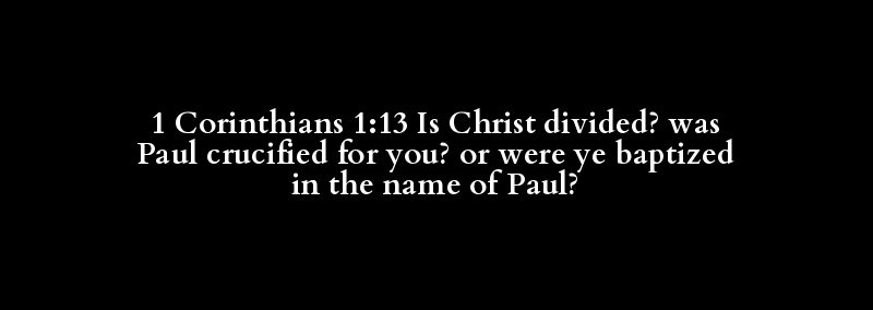 1 Corinthians 1:13 Is Christ divided? was Paul crucified for you? or were ye baptized in the name of Paul?