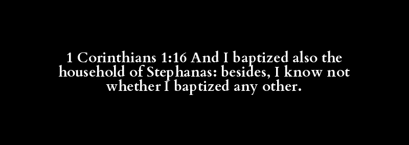 1 Corinthians 1:16 And I baptized also the household of Stephanas: besides, I know not whether I baptized any other.