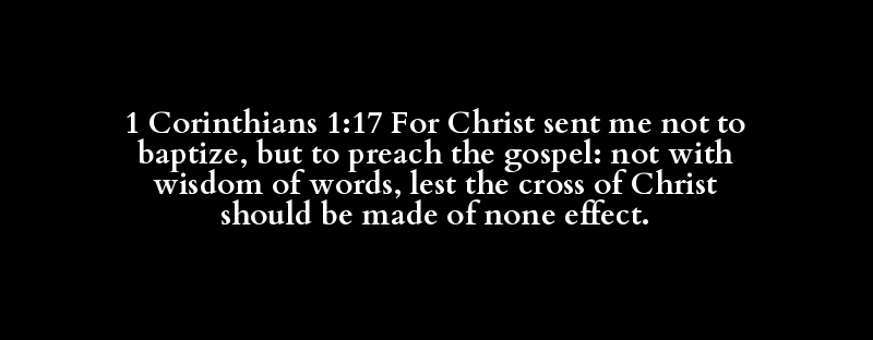 1 Corinthians 1:17 For Christ sent me not to baptize, but to preach the gospel: not with wisdom of words, lest the cross of Christ should be made of none effect.