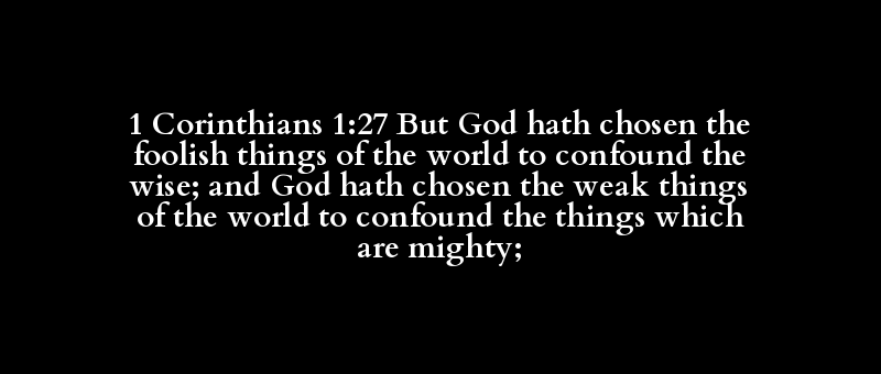 1 Corinthians 1:27 But God hath chosen the foolish things of the world to confound the wise; and God hath chosen the weak things of the world to confound the things which are mighty;