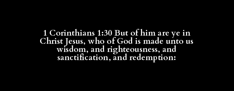 1 Corinthians 1:30 But of him are ye in Christ Jesus, who of God is made unto us wisdom, and righteousness, and sanctification, and redemption: