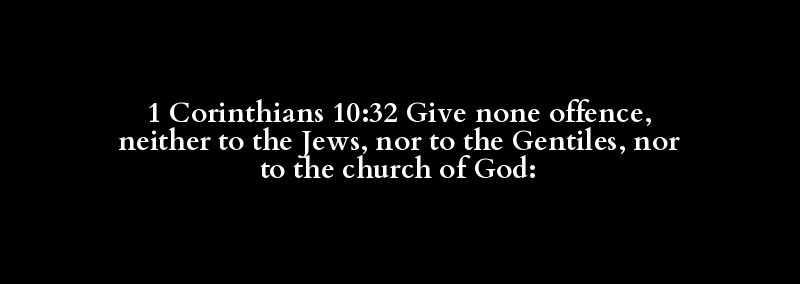 1 Corinthians 10:32 Give none offence, neither to the Jews, nor to the Gentiles, nor to the church of God: