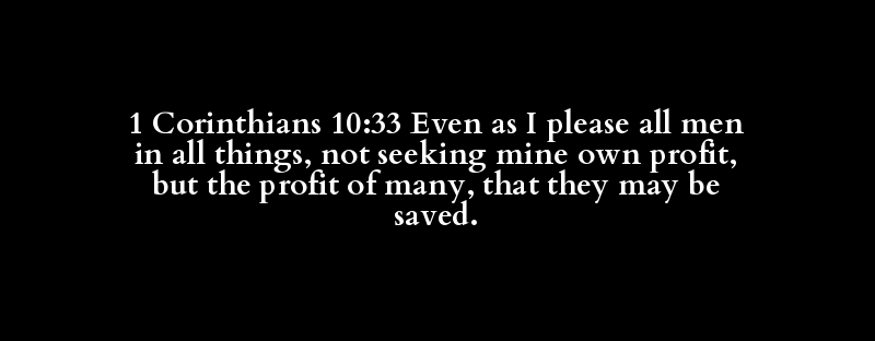1 Corinthians 10:33 Even as I please all men in all things, not seeking mine own profit, but the profit of many, that they may be saved.
