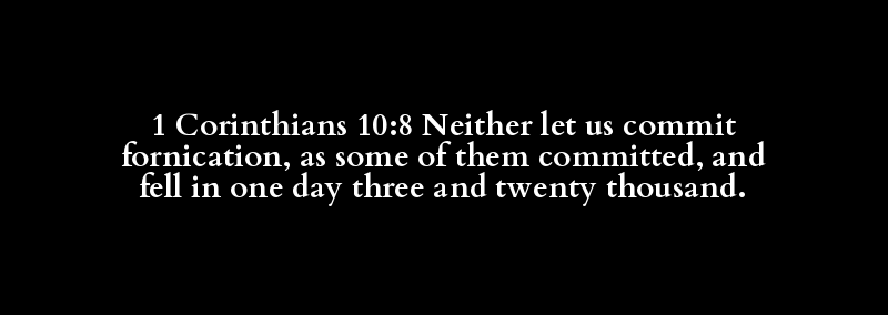 1 Corinthians 10:8 Neither let us commit fornication, as some of them committed, and fell in one day three and twenty thousand.