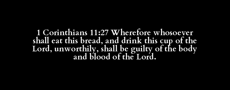 1 Corinthians 11:27 Wherefore whosoever shall eat this bread, and drink this cup of the Lord, unworthily, shall be guilty of the body and blood of the Lord.