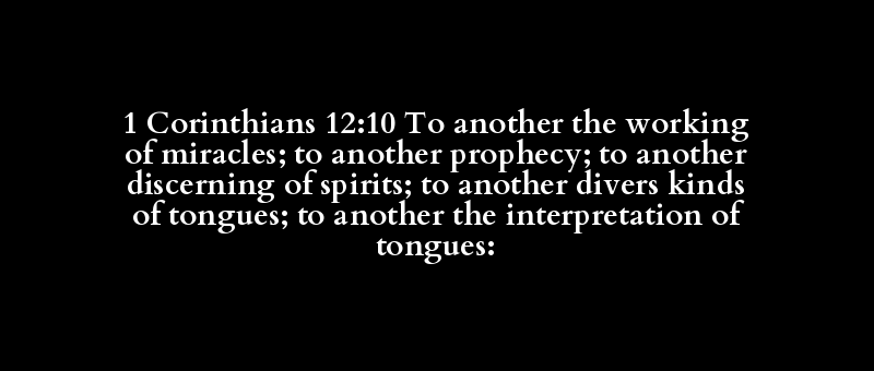 | [de] | [allos] | [energema] | [dunamis] | [de] | [allos] | [propheteia] | [de] | [allos] | [diakrisis] | [pneuma] | [de] | [heteros] | [genos] | [glossa] | [de] | [allos] | [hermeneia] | [glossa] |