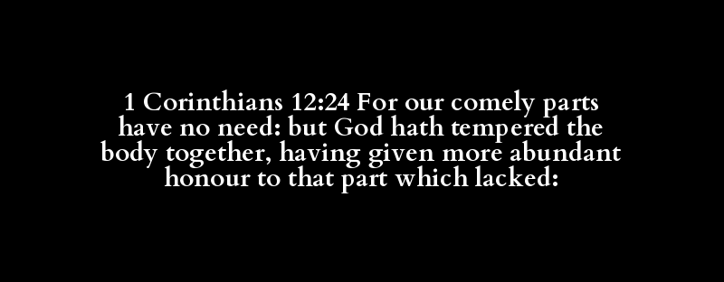 1 Corinthians 12:24 For our comely parts have no need: but God hath tempered the body together, having given more abundant honour to that part which lacked: