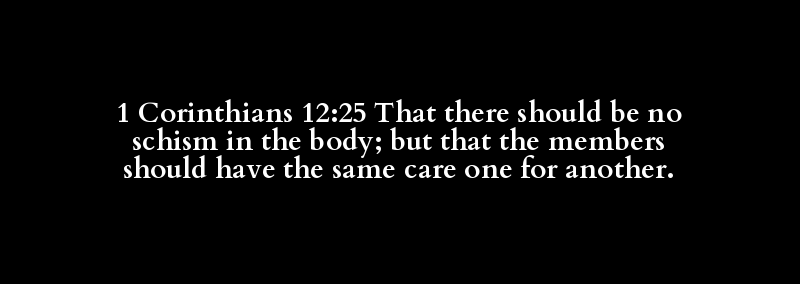 1 Corinthians 12:25 That there should be no schism in the body; but that the members should have the same care one for another.