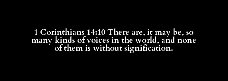1 Corinthians 14:10 There are, it may be, so many kinds of voices in the world, and none of them is without signification.